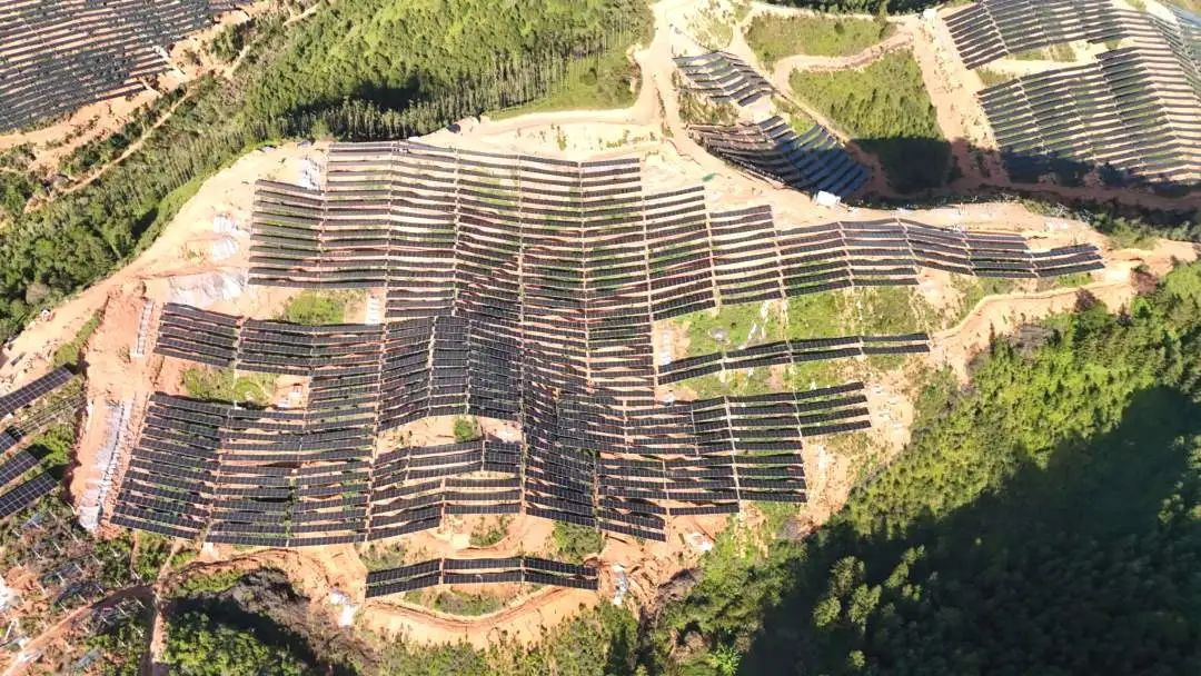 清静彭寨项目位于广东省河源市清静县彭寨镇长沙村,项目分二期建设,总装机容量100MW,支架接纳柔性支架及牢靠支架相连系的形式,是兴发娱乐首个并网的柔性支架项目,搭配单晶660Wp双面双玻组件,年均可生产绿色能源约1.13亿万万时,实现了社会效益与经济效益的“双丰收”。